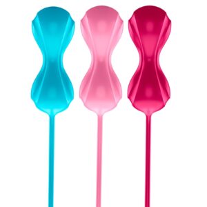 Ce kit comprend 3 boules de Kegel (boules de Geisha) avec des poids variables (62, 82 et 92g) permettant d’entraîner progressivement votre plancher pelvien.