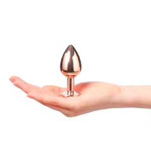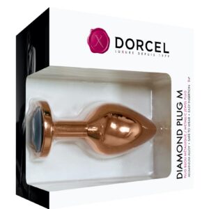 Le Diamond Plug M de Dorcel est un plug bijou premium en aluminium de couleur rose gold avec un bijou ressemblant à un diamant noir à son extrémité.