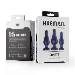 Vous découvrez l’univers du plaisir anal ? Avec ses 3 Butt plugs de différentes tailles et de grande qualité, le set Comet de la marque Hueman vous conviendra parfaitement !