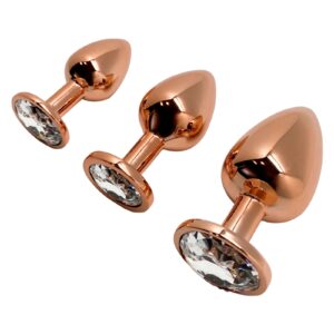 La marque Wooomy vous propose de découvrir le superbe plug / bijou anal Tralalo couleur rose gold taille Medium, décoré dun strass transparent.