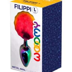 Tout autant sextoy anal, bijou coquin qu’accessoire de jeu BDSM, le plug Filippi Fluffy Raimbow taille Large de chez Wooomy est un jouet intime particulièrement original et sexy avec ses couleurs LGBTQ+ friendly et son pompon en fourrure synthétique fixé à son extrémité.