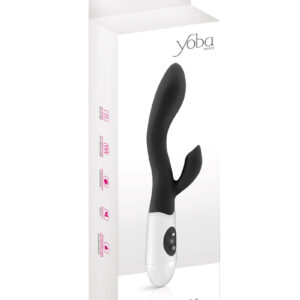 Le vibromasseur Rabbit Naya (coloris noir) de la marque Yoba est un sextoy de qualité dédié au plaisir féminin. Il stimule en même temps le vagin, tout particulièrement la zone du point G grâce à sa forme incurvée et sa tête élargie, et le clitoris grâce à son petit ergot stimulant judicieusement placé.