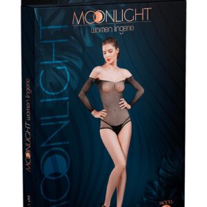 La marque de lingerie Moonlight présente son modèle n° 9, un magnifique body sexy à manches longues, transparent et parsemé de petits strass aux reflets nacrés.