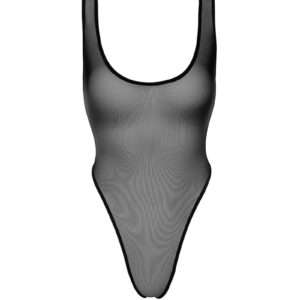 La transparence du tulle sur la peau, la coupe string très échancrée sur les fesses et les hanches, un décolleté carré qui souligne le décolleté et les épaules, et le tour est joué !