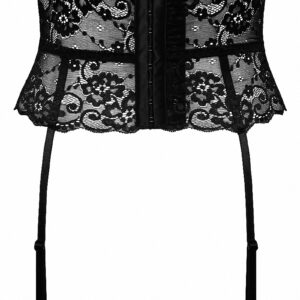 Cette lingerie est à la fois un porte-jarretelles et un serre-taille stylé en fine dentelle noire.