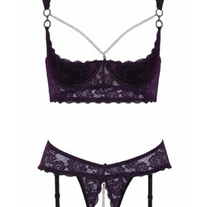 – Ensemble coquin violet 2 pièces en fine dentelle (bas non fournis)