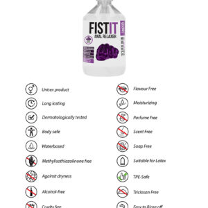 La marque hollandaise Fist It, spécialiste des produits dédiés au sexe hard propose “Fist It Anal Relaxer 500ml”, un lubrifiant à base d’eau, à la fois relaxant, longue durée et très glissant, idéal pour faciliter la pratique du sexe anal.