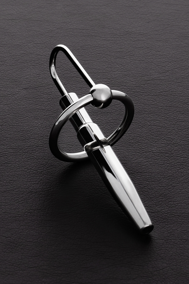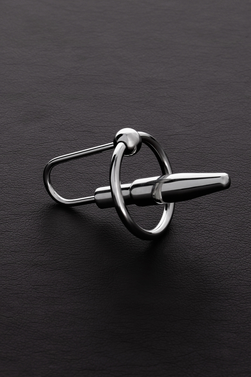 Fabriqué en acier inoxydable de haute qualité avec une finition polie, le Pénis plug ring est composé d’un anneau amovible sur lequel est fixé un petit plug d’urètre en forme de “Mini Fucker”.