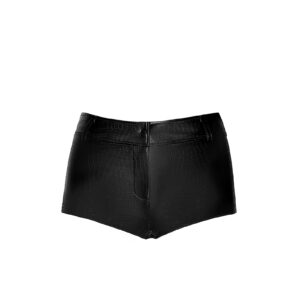Moulant et très court, ce mini short en wetlook extensible texturé d’un effet peau de crocodile est particulièrement sexy.