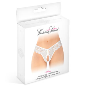Le string ouvert Alicia blanc est incroyablement coquin avec son ouverture suggestive sur le pubis et ses finitions sensuelles en dentelle.