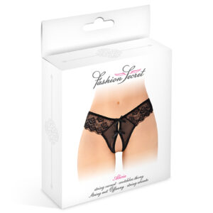 Le string ouvert Alicia noir est incroyablement coquin avec son ouverture suggestive sur le pubis et ses finitions sensuelles en dentelle.
