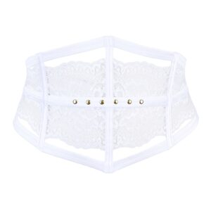 Structurée par des tiges qui assurent une belle tenue sur la taille, la ceinture est composée d’une dentelle légère élégante, décorée au milieu d’un élastique incrusté de clous dorés.
