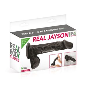 Pour les amateurs de sextoys ultra-réalistes et de grande taille, voici Real Jayson Noir, un gode avec de belles dimensions (21 cm de long par 4,2 cm de diamètre) de la marque Real Body.