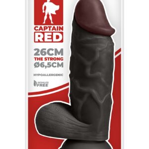 The Strong Black, de la marque Captain Red, est un gode noir géant (26 x 6,5 cm) très réaliste, doté d’une texture douce et souple en TPE haute qualité, réservé aux amatrices et amateurs de sensations fortes.