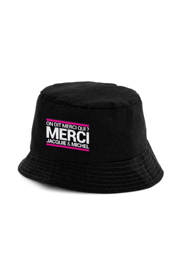 – Logo “On dit merci qui? Merci Jacquie & Michel” brodé sur le bob