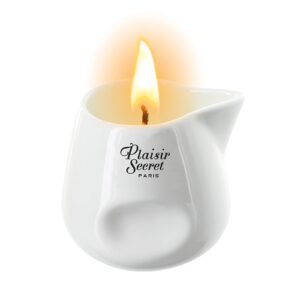 Bougie sensuelle et gourmande pour des plaisirs coquins partagés par Plaisirs Secrets.