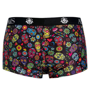 Ce boxer sexy est fabriqué en Tissu doux imprimé de motif de calaveras colorés.