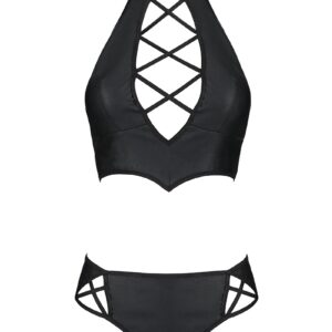 Donnez du style à vos tenues avec cet ensemble clubwear bustier dos nu et tanga faux cuir, par la marque sexy Passion.