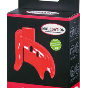 La marque Malesation, spécialiste des accessoires érotiques pour hommes, propose cette cage de chasteté légère de haute qualité fabriquée en ABS rouge.