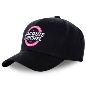 Casquette officielle Jacquie & Michel et son incontournable message “On dit merci qui – Merci Jacquie et Michel” directement brodé sur la casquette (logo rond).