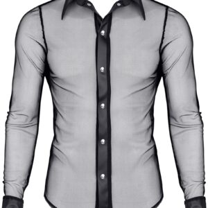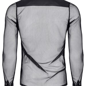 La marque Européenne de vêtements Regnes vous présente une chemise fabriquée en maille transparente noire et tissu effet wetlook noir.
