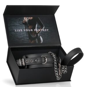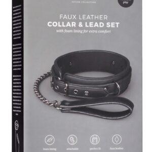 Gardez votre soumis(e) sous votre contrôle avec le “collar and lead set” de Easytoys Fetish Collection, un collier de bondage de qualité, en cuir synthétique, accompagné d’une laisse en métal.