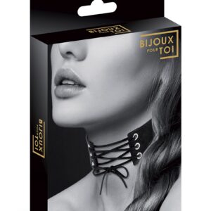Avec son système de fermeture par laçage sur le devant, ce collier noir, ras de cou, de la marque Bijoux pour toi vous donnera un look très coquin.