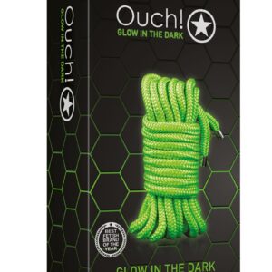 Pour les amateurs de bondage japonais, la marque Ouch! propose cette solide corde couleur vert fluo “Glow In The Dark” qui brille dans le noir, d’une longueur de 10 mètres, spéciale Shibari et jeux de bondage.