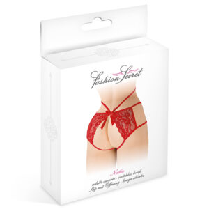 Cette culotte ouverte Fashion Secret ne laissera pas votre partenaire indifférent. Elle est conçue en dentelle rouge transparente et ornements, largement ouverte sur les fesses, avec un petit noeud au creux des reins.