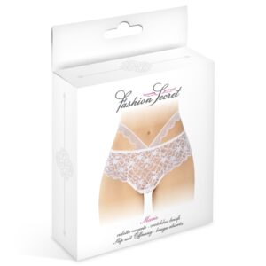 Cette culotte blanche laisse entrevoir vos charmes de par sa transparence et son ouverture au niveau de lentrejambe qui est une invitation au désir et au plaisir.