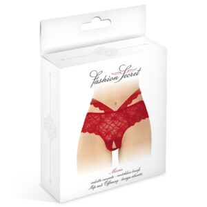Cette culotte rouge laisse entrevoir vos charmes de par sa transparence et son ouverture au niveau de lentrejambe qui est une invitation au désir et au plaisir.