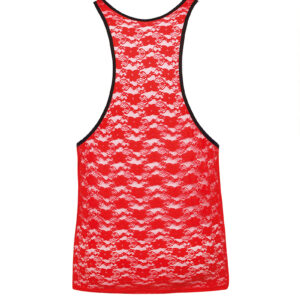 Ce débardeur sexy est fabriqué en dentelle rouge au motif floral qui crée des zones de transparence.