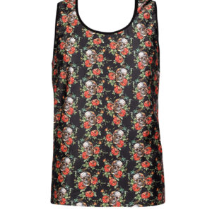Ce débardeur sexy est fabriqué en Tissu doux imprimé de crânes et roses esprit RocknRoll.