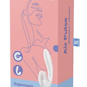 Sextoy 100% féminin, Supernova de la marque Satisfyer, est un double stimulateur qui propose indépendamment ou simultanément la stimulation du clitoris pas air pulsé (ondes de pression) et du vagin (point G) par vibrations.