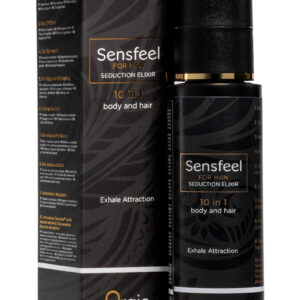 Sensfeel for Man Seduction Elixir, la lotion masculine 10 en 1 pour le corps et les cheveux : parfum aphrodisiaque, booster de phéromones, soin de la peau et des cheveux.