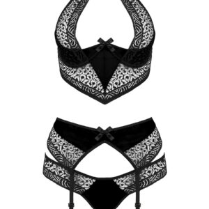 Ensemble 3 pièces : soutien-gorge, porte-jarretelles, string (bas non fournis)