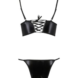 La culotte en vinyle noir sublime les fesses sobrement, et le détail de dentelle à lavant saccorde parfaitement avec le soutien-gorge. Deux fines lanières sur les côtés soulignent les hanches pour mettre en valeur votre silhouette.
