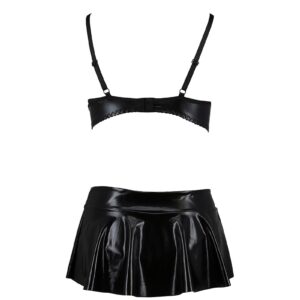 Pour accompagner ce soutien-gorge sexy, Passion vous propose cette jupe plissée très tendance à effet vinyle et très courte. Vous préférez enlever une couche de vêtements ? Pas de problème, le string est inclus et saccorde parfaitement avec le soutien-gorge.