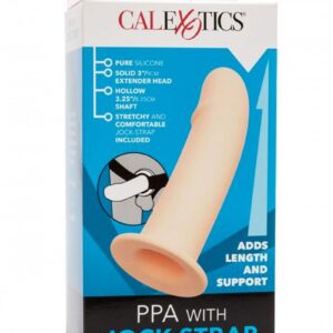 Sextoy de haute qualité, l’extenseur de pénis “PPA with Jock Strap” est conçu en silicone durable, hypoallergénique et inodore. Creux, il s’enfile sur la verge et permet d’accroitre la longueur de celle ci de 9 cm, ainsi que son épaisseur avec un diamètre externe de 5 cm.