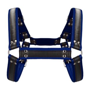 Pour les adeptes de la mode fétichiste, la marque Ouch! a conçu le “Chest Bulldog Harness”, un magnifique harnais en cuir véritable, bleu et noir, orné de fermetures en acier inoxydable.