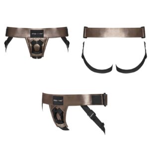 Vous avez le fantasme de pénétrer un homme ou une femme ? le Harnais Gode-ceinture Curious couleur bronze de Strap-On-Me promet aux femmes de vivre de nouvelles expériences sexuelles à deux.