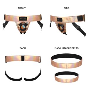 Vous avez le fantasme de pénétrer un homme ou une femme ? le Harnais Gode-ceinture Curious couleur holographique rose gold de Strap-On-Me promet aux femmes de vivre de nouvelles expériences sexuelles à deux.