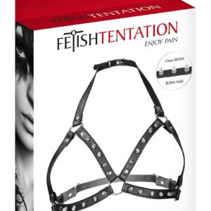 Sur ce harnais pour la poitrine, il y a plusieurs pointes non dangereuses et rivets en métal qui lui donnent encore plus un côté SM. La paire de seins sera maintenue et parfaitement ajustée pour un rendu du plus bel effet. Les anneaux peuvent servir à attacher une laisse ou autres pour du bondage, de la soumission lors de vos soirées coquines.