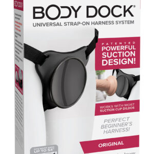 Grâce à son système breveté “PUSH-AND-PLAY” à aspiration puissante, le harnais universel Body Dock est non seulement compatible avec pratiquement tous les godes à ventouse, mais en plus il est vraiment simple à utiliser. Il suffit de fixer la ventouse de votre gode ou vibromasseur préféré sur la plaque d’accueil dédiée, et d’ajuster les sangles du harnais à votre taille.