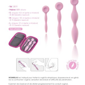 Le vaginisme est une cause commune de douleur et de gêne lors des rapports, souvent dorigines physique et psychologique. Le kit Intimrelax a été conçu spécialement pour vous aider à le réduire significativement, progressivement et sans vous faire mal.