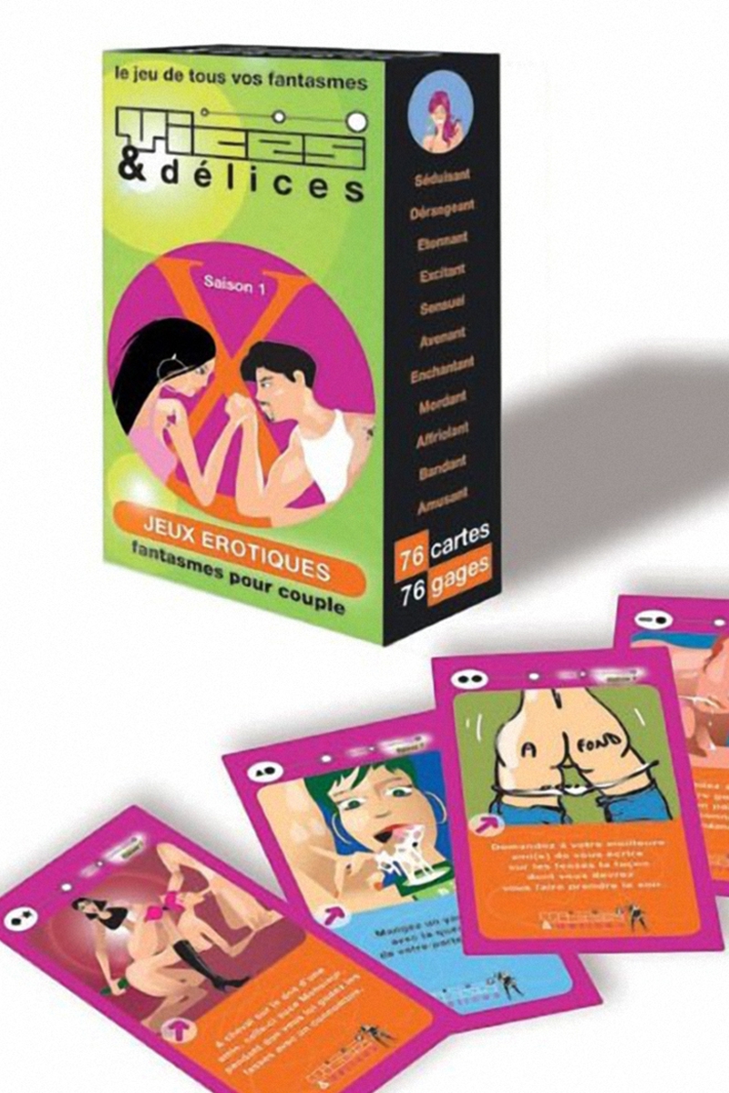 Vices et Délices, un tourbillon de fantasmes, 76 gages pour jouer à deux ou plus… 3 degrés de difficultés : vert, bleu, orange, pour s’éclater sexuellement! Oserez vous jouer les cartes de couleur orange?
