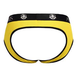 Ce jock bikini sexy est fabriqué en Tissu jaune texturé esprit gaufré.