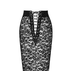 Alliant avec brio raffinement et provocation, la jupe en dentelle transparente Ambivalence est une tenue réservée à vos soirées coquines.