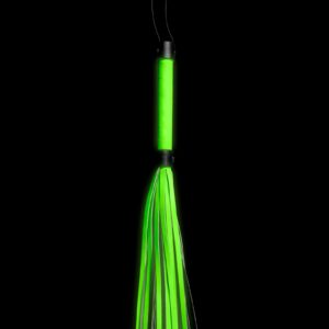Doté d’une poignée et de lanières couleur vert fluo, le martinet est fabriqué en cuir synthétique.