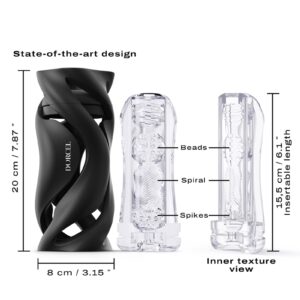 Gaine DEEP BLOW BLACK : variez les sensations grâce aux picots, spirale et perles de la manche, contenue dans un boîtier noir et chic